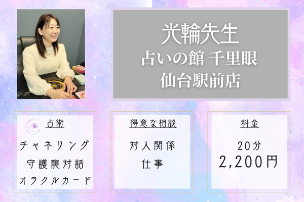 光輪先生は、千里眼仙台駅前店で長年活躍されている実力派の占い師。