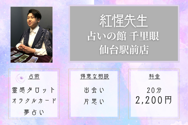 紅惺先生は、仙台駅前店で活躍する実力派の占い師。
