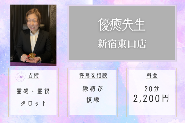 霊視能力に優れ、現状を正確に読み取る力で多くの相談者から信頼を集めている優癒先生。