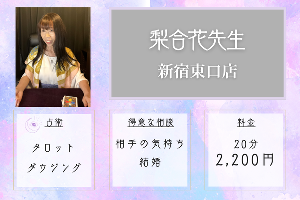 包容力があり、タロットカードやダウジングで相談者が心に抱える重たい荷物を解放してくれる梨合花先生。