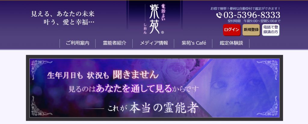 電話占い紫苑は、25年以上続く老舗の電話占いサイトです。