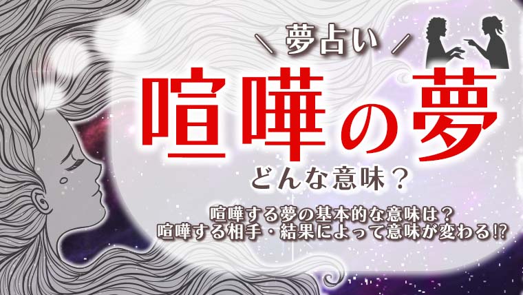 恋人や友人、家族と喧嘩する夢を見たことはありませんか? 目覚めたときに嫌な気分になることも多い喧嘩の夢ですが、実は夢占いでは吉夢とされることが多いのをご存じでしょうか。 喧嘩した相手や夢の展開によって意味はさまざまに変化します。恋人と喧嘩... -