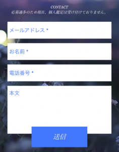 問い合わせフォームは以下の画像のようなもので、記入する内容は「メールアドレス」、「名前」、「電話番号」、「本文」のみです。
