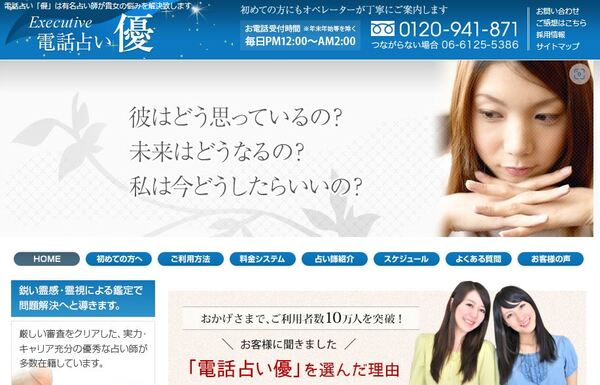 ほかにも、電話占い優は、深夜まで鑑定に対応しており、また最も安い占い師は1分160円で試せるところが定評を集めています。